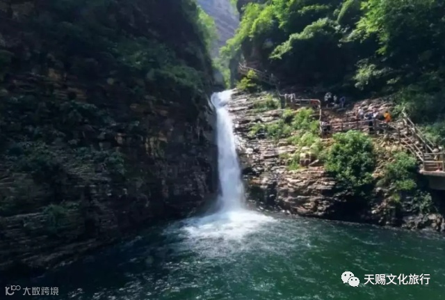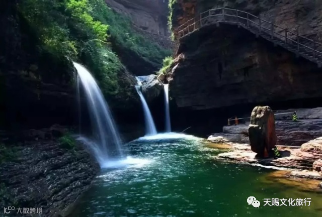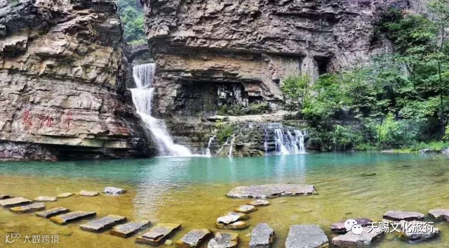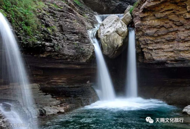 含珠:太行大峡谷最窄的峡谷,不足1米,两山之间还夹着一块瀑布,瀑布把从上而下的水一分为二,形成了一个'丫'字瀑布。一处两景,很美妙吧?