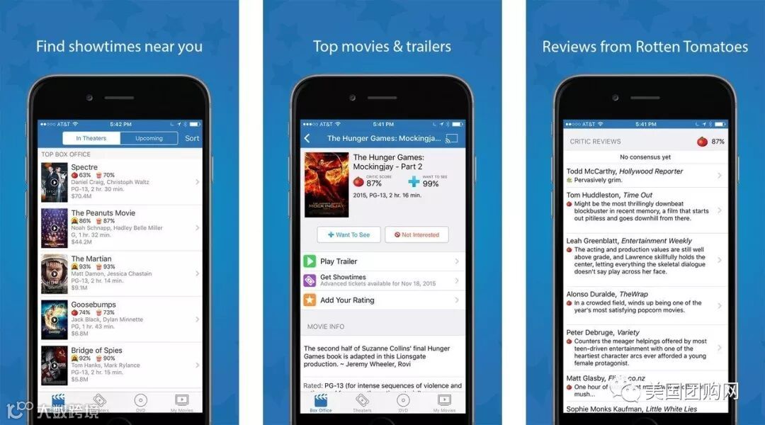 想去看场电影用Flixster就对了,这款app会告诉你现正热映的电影并且帮你找出最近的电影院时刻表,你也能直接透过Flixster订票,预告片和观众的影评也能在上面找到。