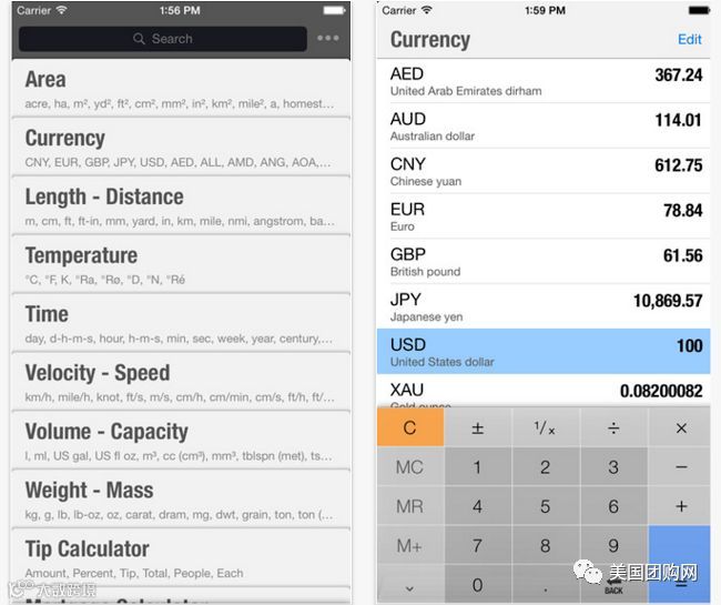 在美国生活因为计量的单位不同,像是汇率、温度、长度、重量等等,会需要用到数字的转换,Converter Plus几乎包含了各种单位的转换,让你不再需要伤脑筋。
