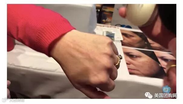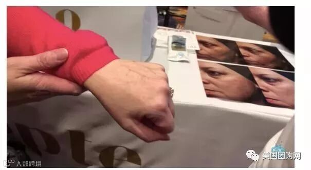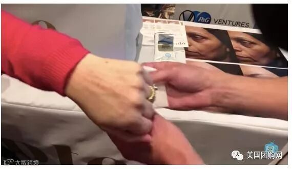 一个测试者跃跃欲试的想亲测,看究竟能不能遮盖她手部很明显的老年斑。