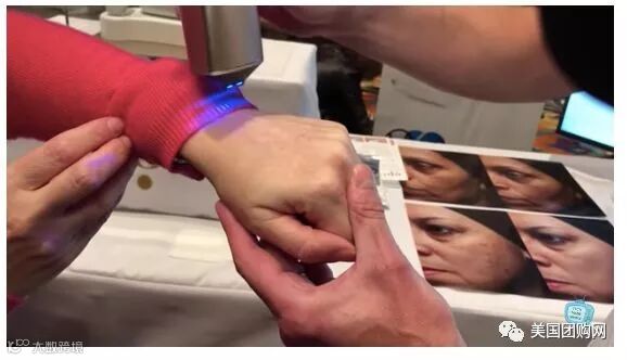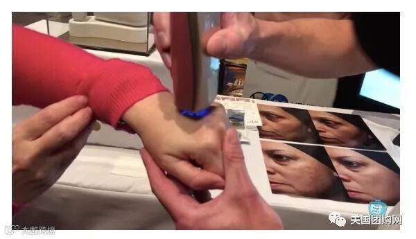 于是工作人员,先用蓝光在她手部扫描了一下,检测她的肤色。