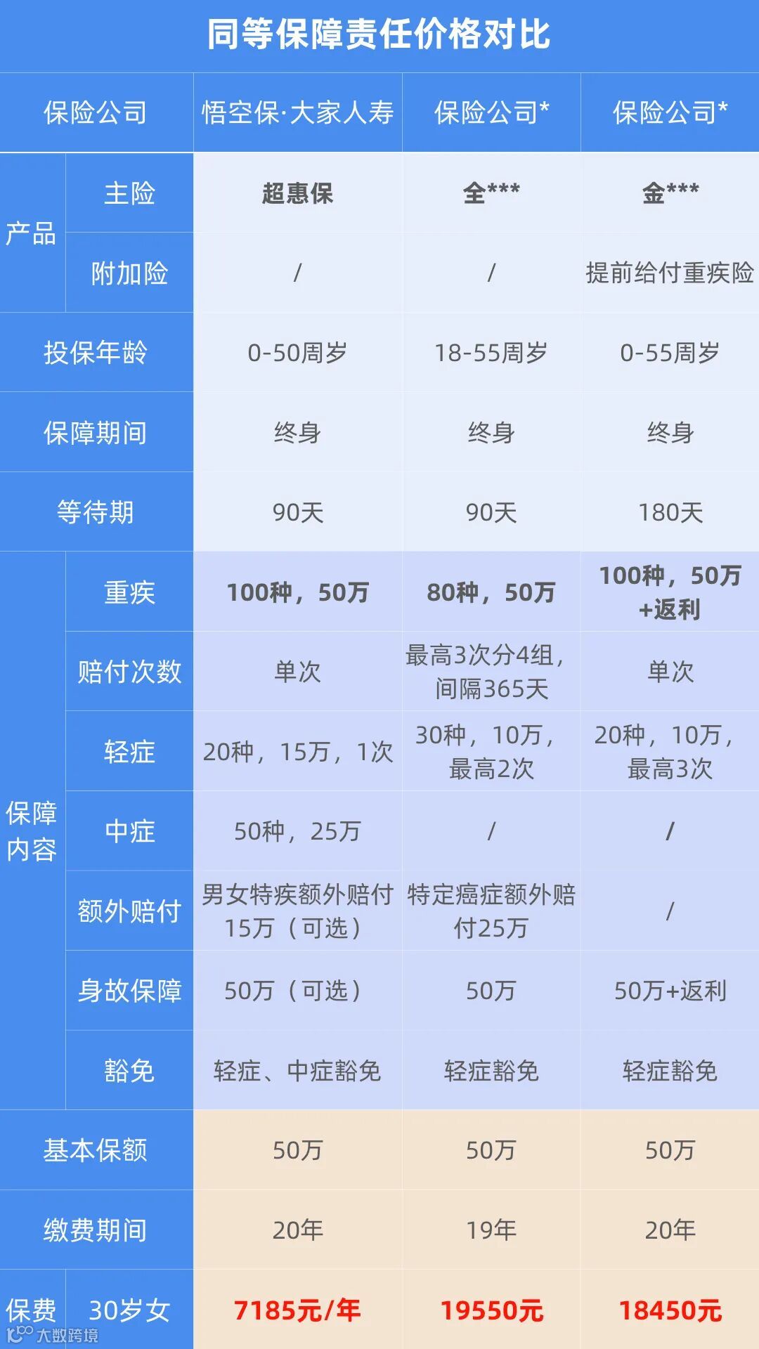 同等重疾保障责任下,我们举个例子,来对比一下价格:
