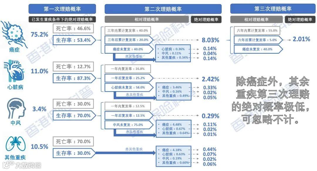1、重疾险的发生率,本身就低于其他疾病。二次赔付在重疾的基础上,一般都进一步设定了赔付限制,比如二次重疾的发生时间、疾病的种类,