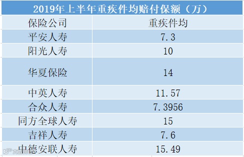 2019年上半年重疾赔付数据