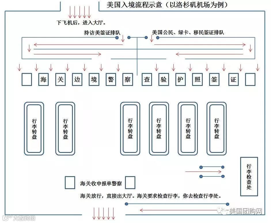 担心入境时不熟悉语言和需要转机的情况下是个挺困难的事,在这里附上美国机场登陆流程。