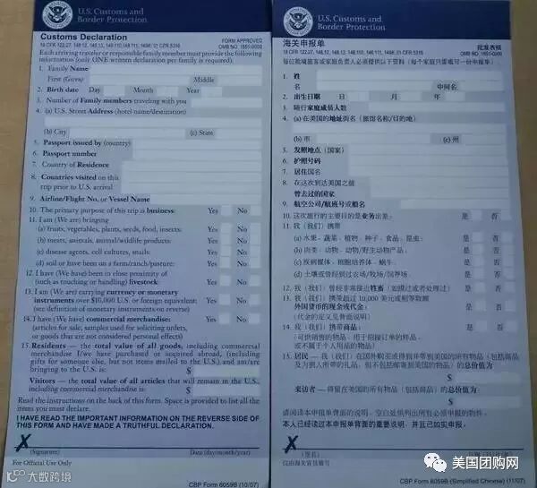 在飞往美国的飞机上,空姐会派发一张蓝色的表格,这张表格即是美国海关的入境申报表,主要作用是来检查旅客的行李,请按照实际情况来填写表格。
