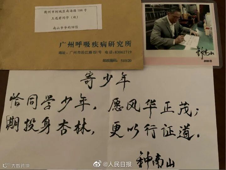 7个月前,还在上六年级的王逸君,给钟南山院士写亲笔信,表示自己“立志要当医生”;谁知8月28日,她竟收到钟南山的亲笔回信。
