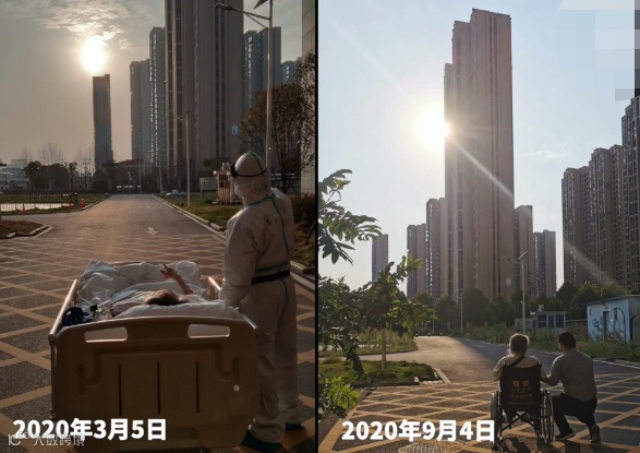 2020年3月5日,一张武汉战疫期间,医生陪患有新冠肺炎的老人看日落的照片走红网络。