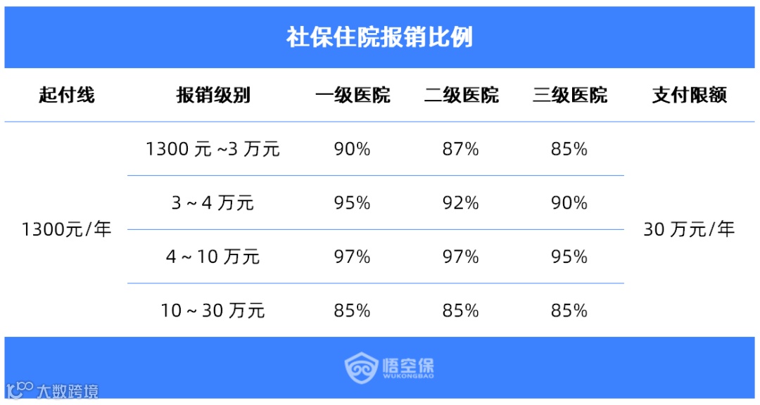 免赔额、最高限额限制:费用超过一定金额才能报销,而且有最大报销限额。例如北京职工医保,住院最多报销 30 万,门诊 2 万;