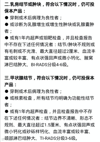 而像甲状腺结节、乳腺结节者,因为可以通过手术判断是否良性、对结节划分等级、通过影响观察形态等,部分产品也对这部分的结节患者敞开了大门。