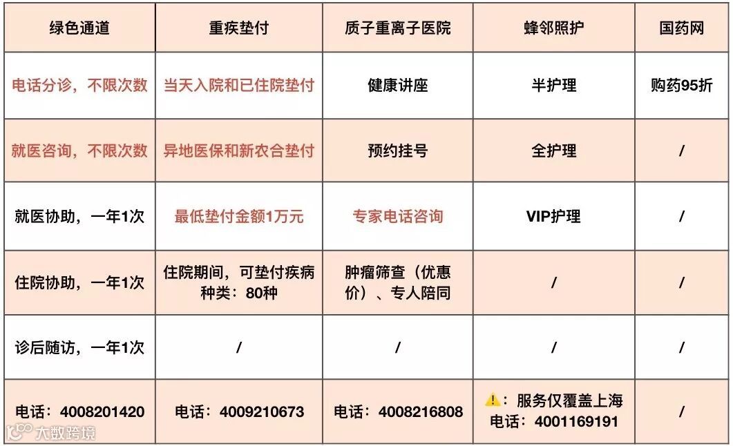 1、绿通服务:只需要保费大于2000元,缴费期大于等于10年便可享受;