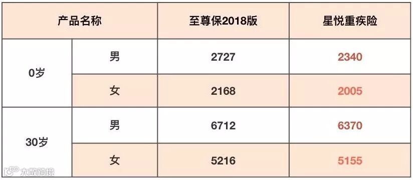 第一次对比的初步结论:女性投保星悦重疾险,不论是0岁还是30岁、40岁,都比买至尊保2018版还便宜。