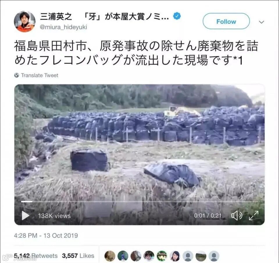 2019年,台风“海贝思”登陆日本,日本趁乱“丢失”2667袋核固体废料。