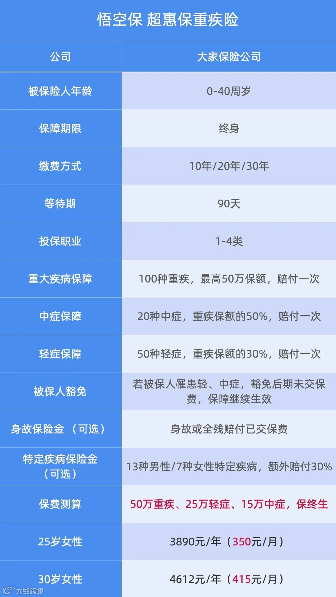 悟空超惠保,原本就是一款专为年轻女性的打造的基本款重疾,170种疾病、90万保额、保终生,且开发月付功能,每月3-400元,就能撬动几十万的杠杆,守护一代独立女性的大病风险保障。