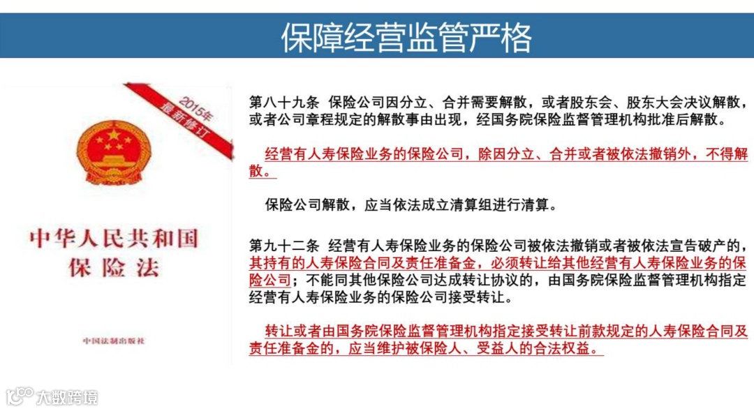《中华人民共和国保险法》第89条规定:经营有人寿保险业务的保险公司,除因分立、合并或者依法被撤销外,不得解散。