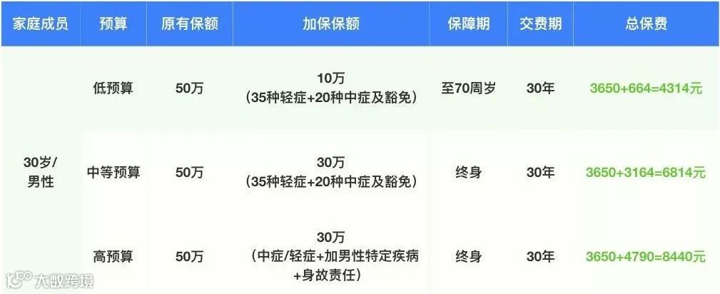 老用户,建议直接加保到最高30万保额。30岁男性,购买30万保额保障终身的,一年仅需3164元。