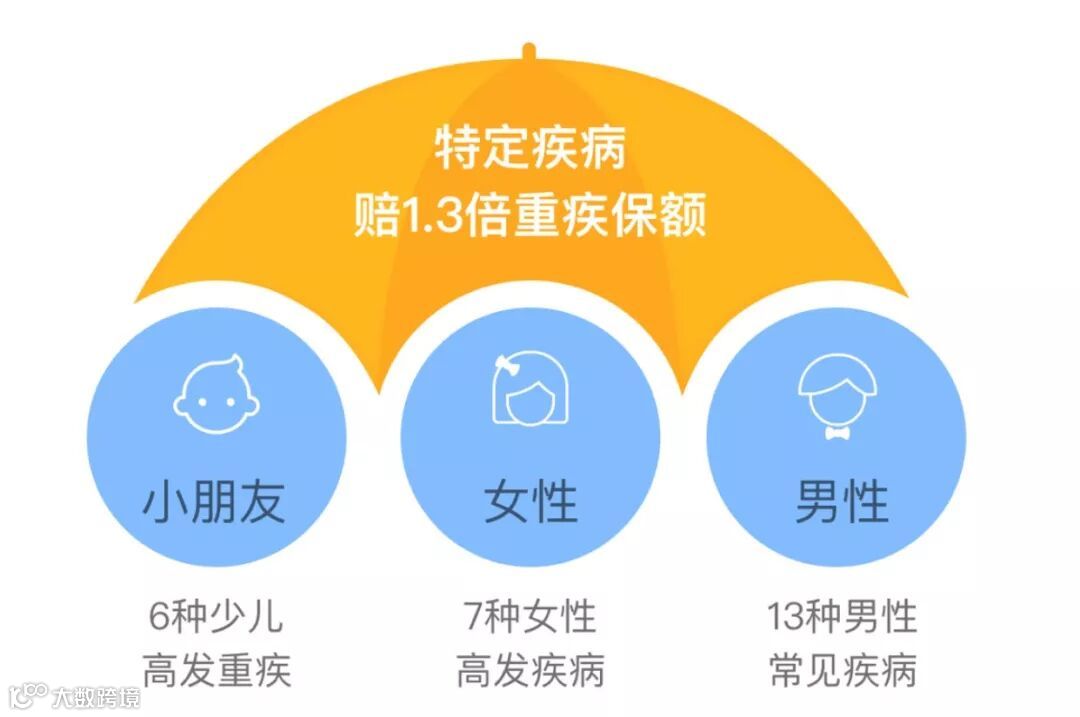 特殊:男性13种重疾/女性7种重疾/少儿6种重疾,额外赔付30%保额