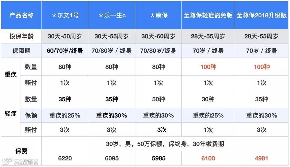 我们把2018版和近几年的网红重疾险产品放在一起对比,可以从表格中得出以下结论: