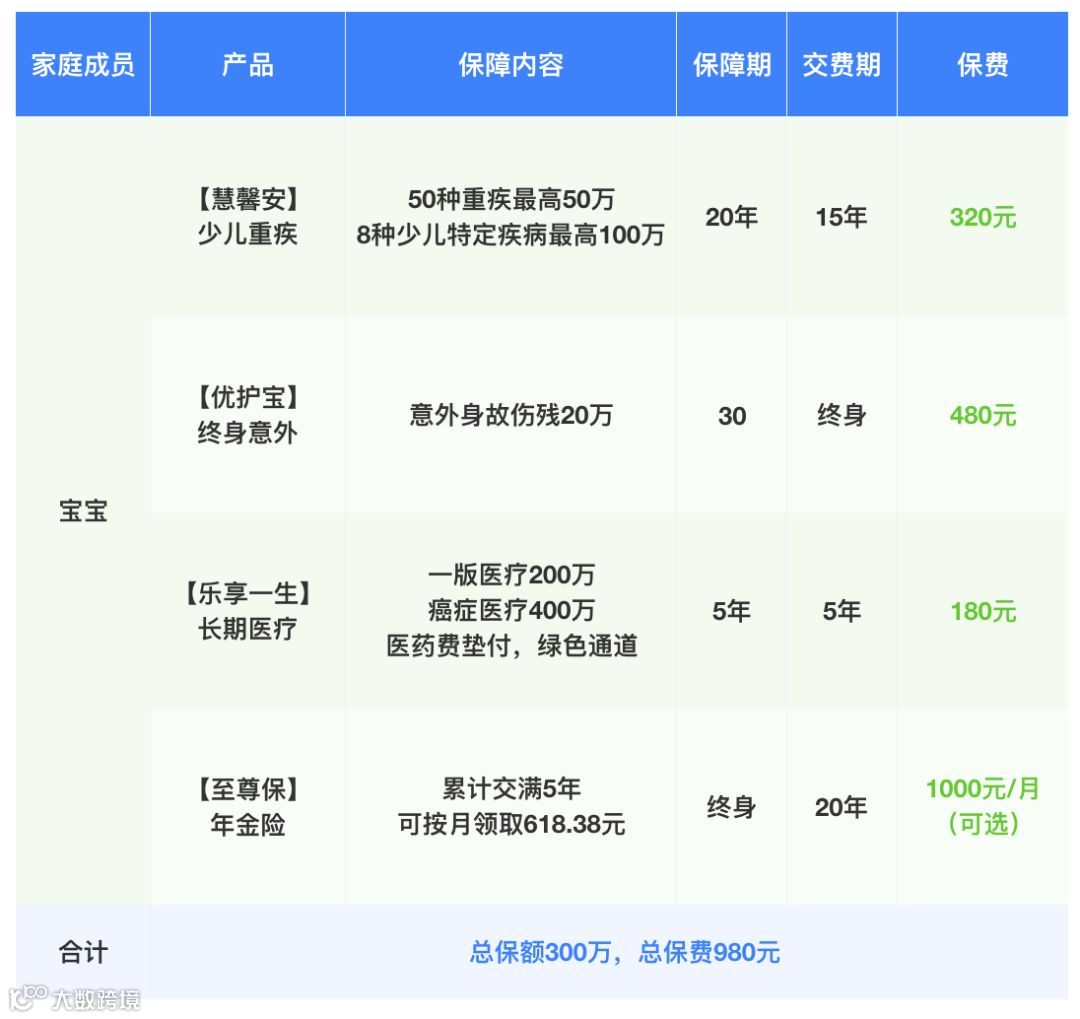 所以,给孩子买保险,基本上只用考虑重疾险、意外险、医疗险就够了,预算充足再考虑教育金,但无需考虑寿险保障。