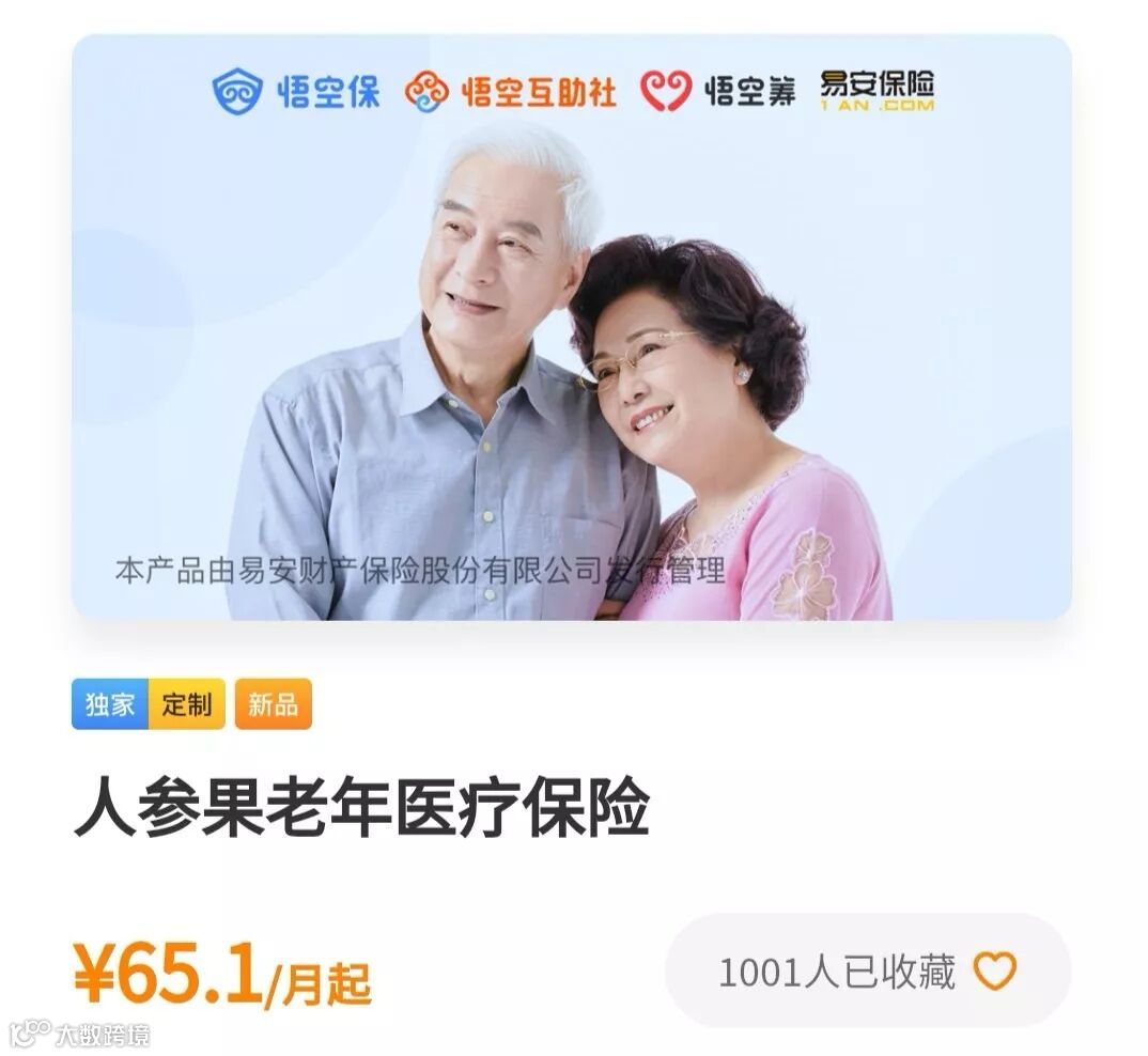 这款产品就是,悟空保携手易安财险共同推出的“人参果老年特疾医疗保险”。