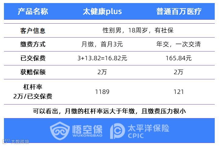 设置月缴功能,是为了降低缴费压力,并且提高保险杠杆,举个例子,假设有一位客户,因车祸住院治疗,扣掉社保和免赔,剩2万元自付部分。