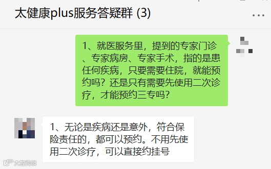 太健康plus在这一点上做得很好,不论任何疾病、意外,不论是重疾、轻症、中症,还是普通疾病,只要需要预约就医,都可以提供服务: