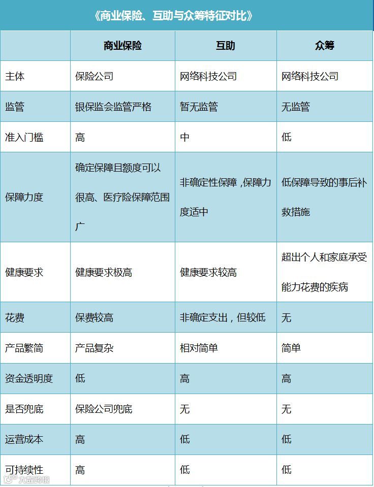 互助与众筹的作用,就是与社保、商业保险互为补充,为人们提供更加全方位的保障;同时,众筹和互助等商业模式的开展过程,本身也在对参与者进行着商业保险意识的普及。