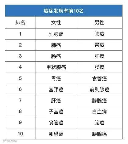 根据2018年2月,国家癌症中心发布的中国最新癌症数据表明,在中国每天都有1万多人确诊新发癌症。而癌症发病前10如下:
