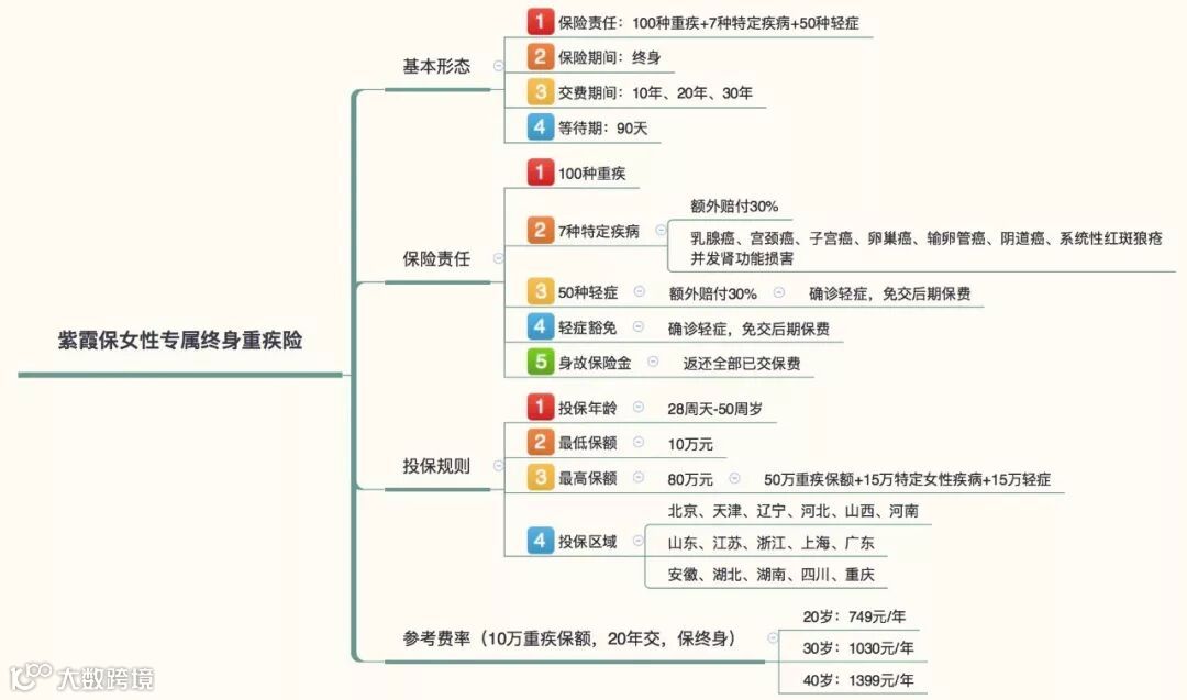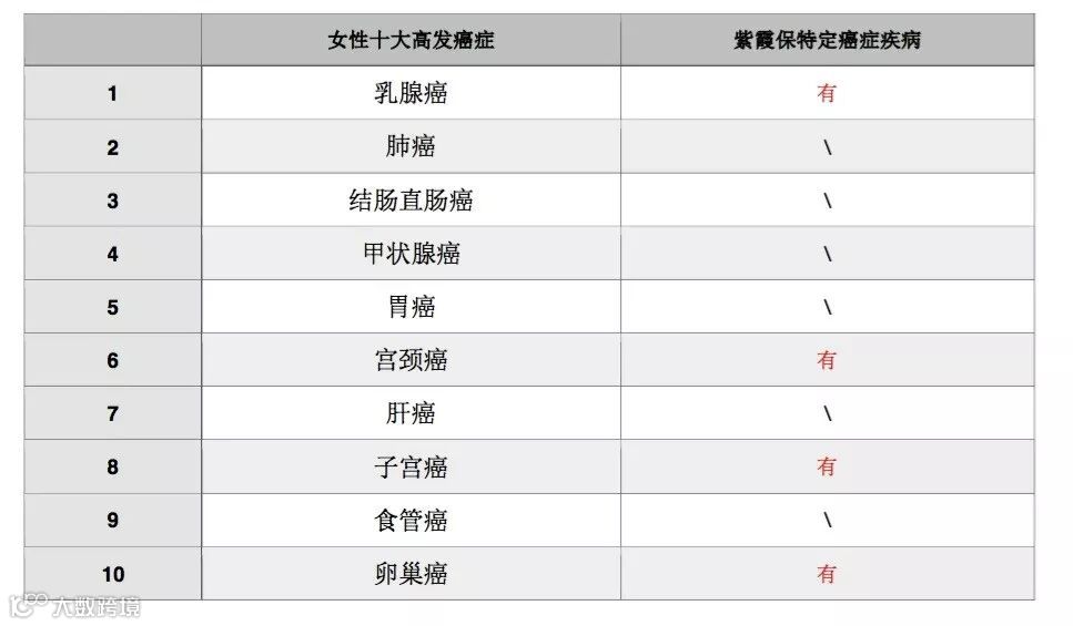 悟空保此次推出的紫霞保女性专属重疾险,在主险100种重疾,50种轻症的基础上,另外特别附加了乳腺癌、宫颈癌、子宫癌、卵巢癌、输卵管癌、阴道癌、系统性红斑狼疮并发肾功能损害等7种女性常见高发的重症。