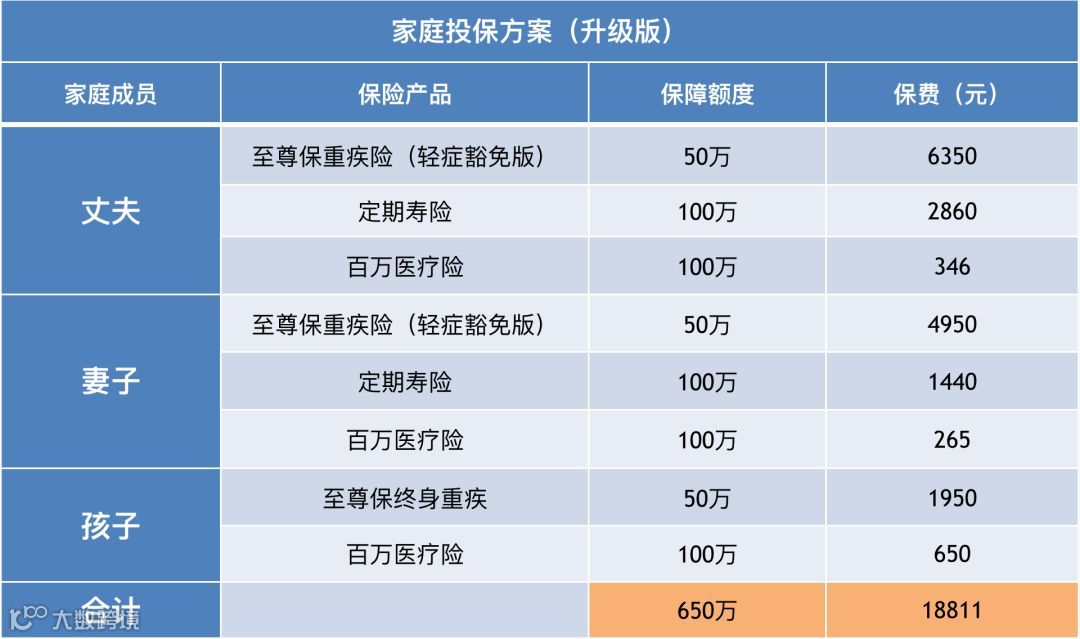 为家庭做保险方案,除了我们都知道的先大人后孩子、先保障后理财的顺序原则外,还要有侧重。