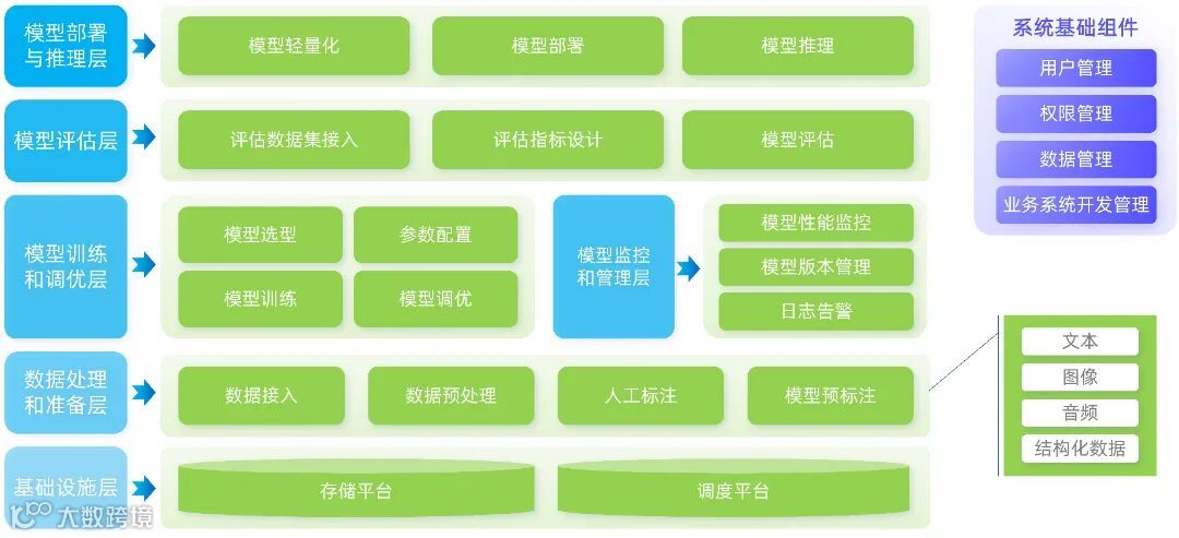 涵盖数据管理、模型训练与优化,为整个架构提供坚实的技术基础,同时软件系统已适配国产化硬件、操作系统以及数据库。