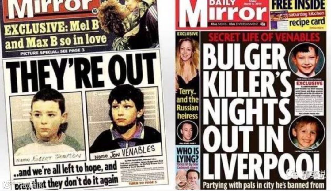 英国杀害2岁男童的两个男孩,都分别被判处了7年及以上有期徒刑,并且后来一直受到监控。甚至,还有好心人,在两个杀人恶魔出狱后,给2岁男童的家长写邮件,把他们改头换面的新身份透露给孩子的家人,从而媒体曝光了两个恶魔的新身份,英国全国又一次掀起声讨他们的浪潮。
