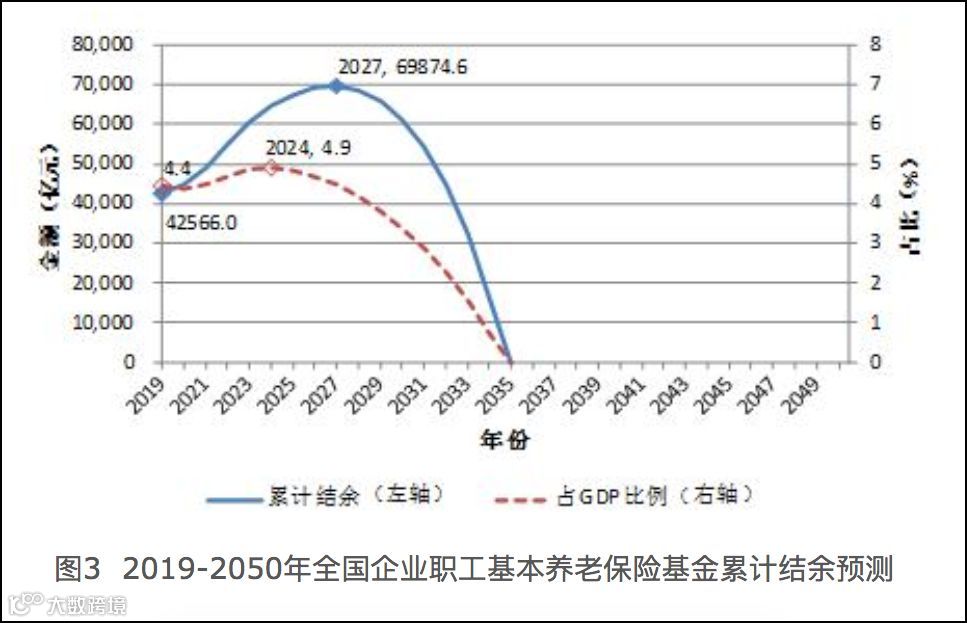 今年四月,社科院发布了《中国养老金精算报告2019-2050》,结果显示:现在一个职工供养0.47个退休老人,等30年后,1个职工供养1个老人。现在的养老金结余4.26万亿,2027年以后开始断崖式下跌,并在2035年前后归零。