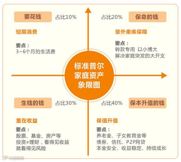 顾名思义,一定要留20%的家庭资金作为“保命的钱”,应该优先考虑保险保障,规避家庭发生重大的意外、重疾、身故以及家庭财产的风险。