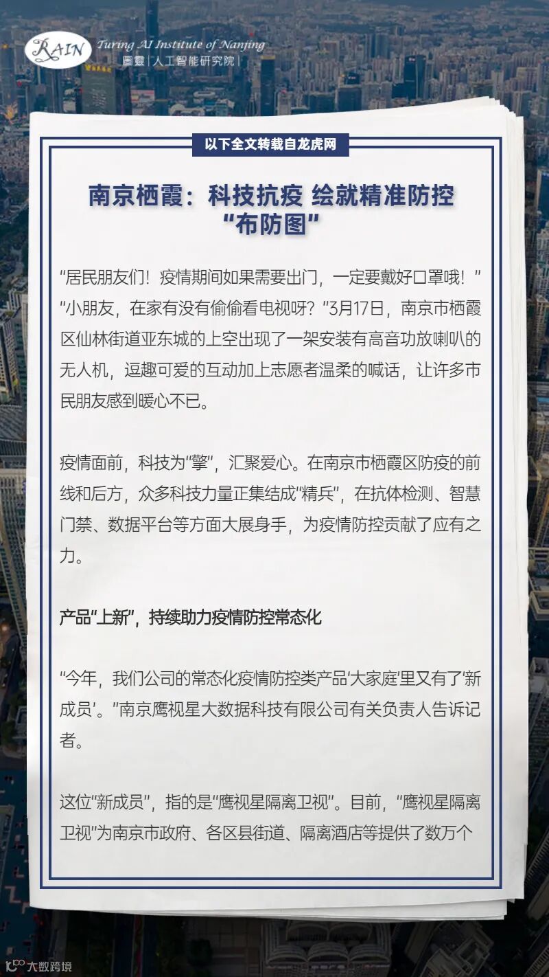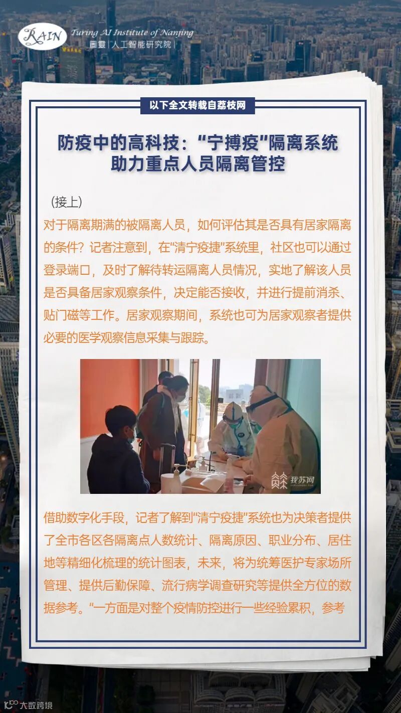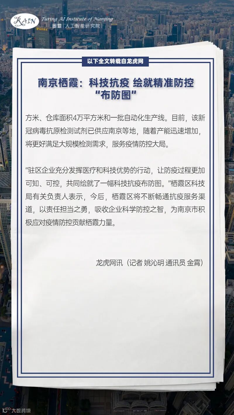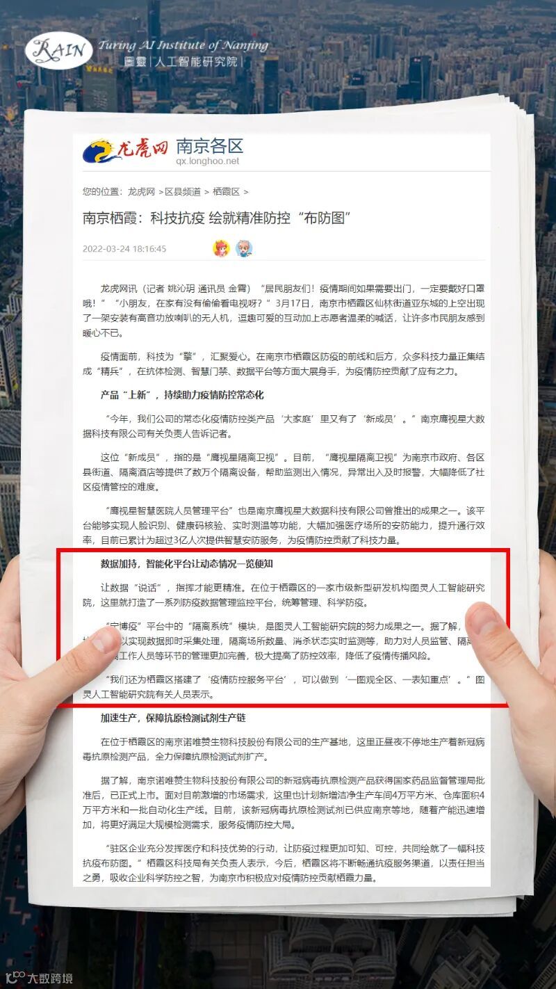 在疫情防控一线,科技始终是极为重要的支撑力量。图灵人工智能研究院作为南京市新型研发机构的代表,将在防疫应用场景、赋能效率等方面持续探索,为搭建疫情防控的“钢铁防护网”注入智慧力量。