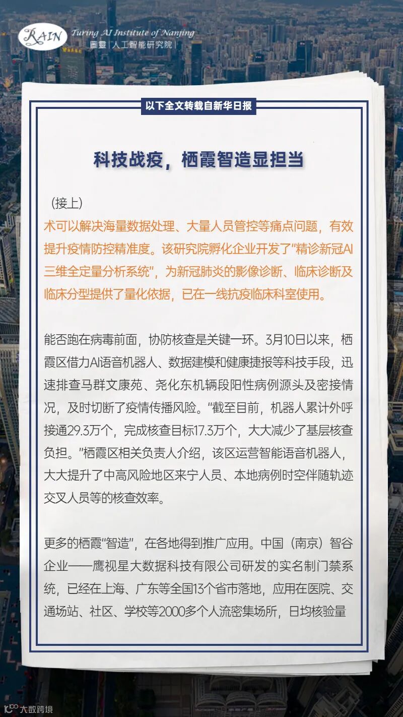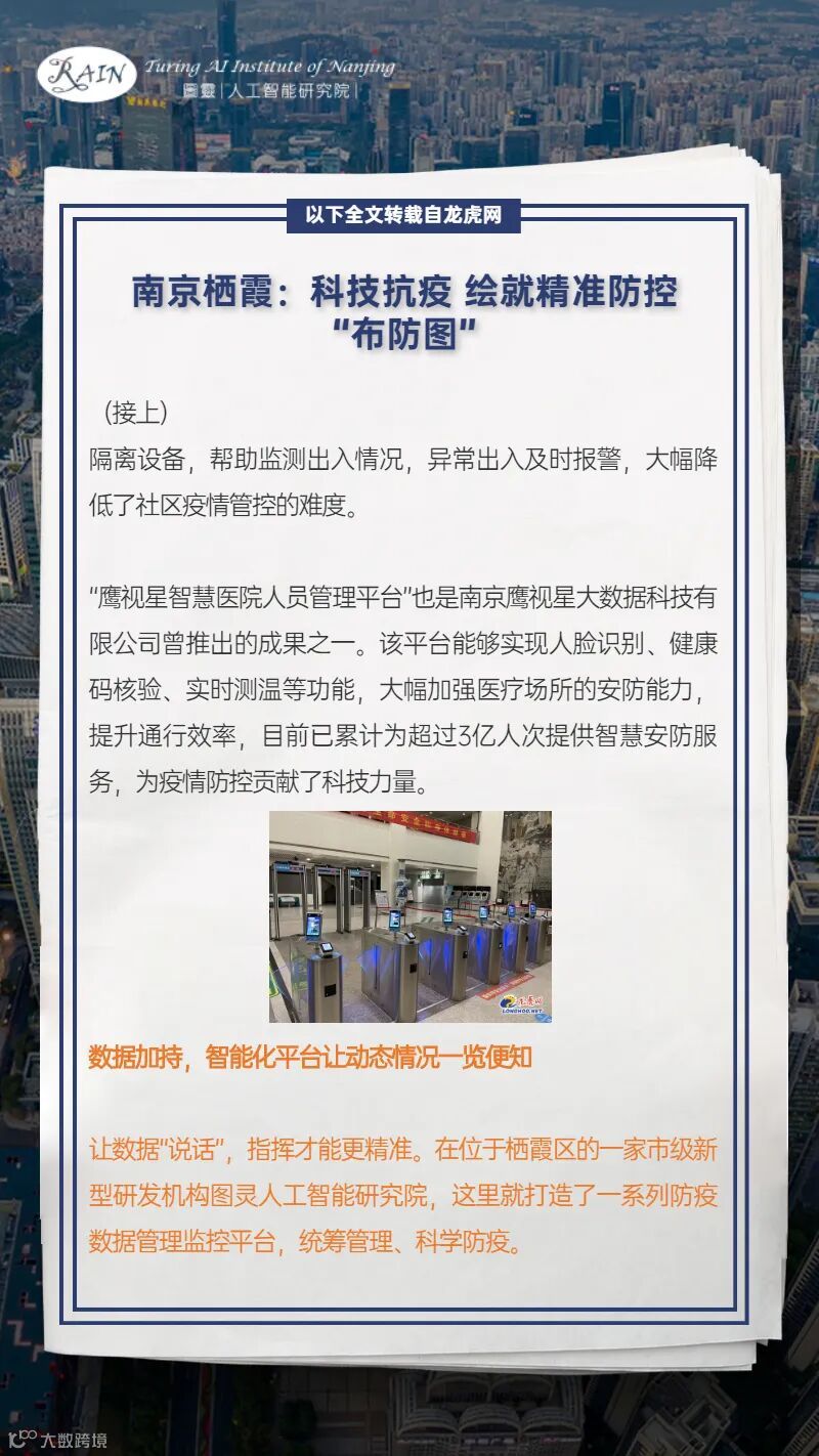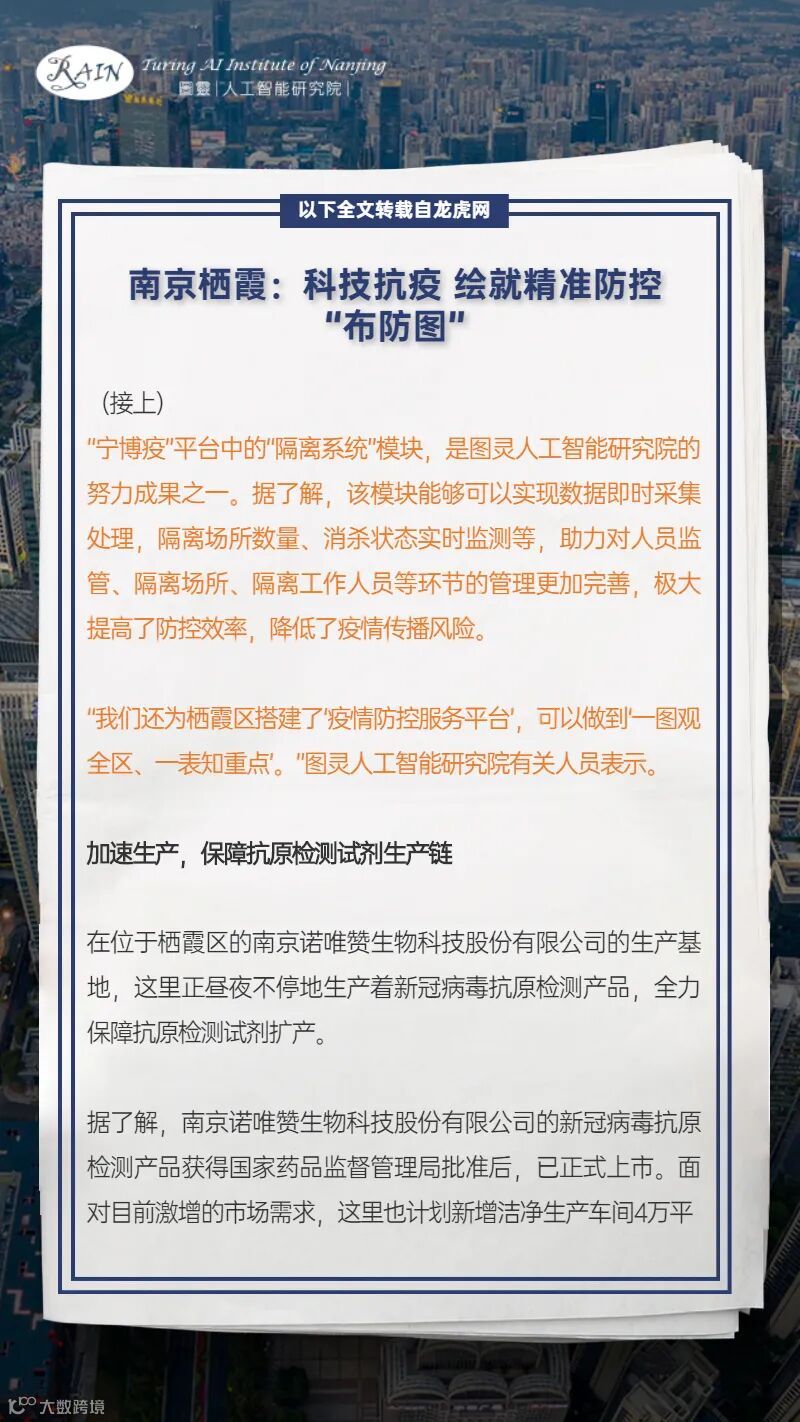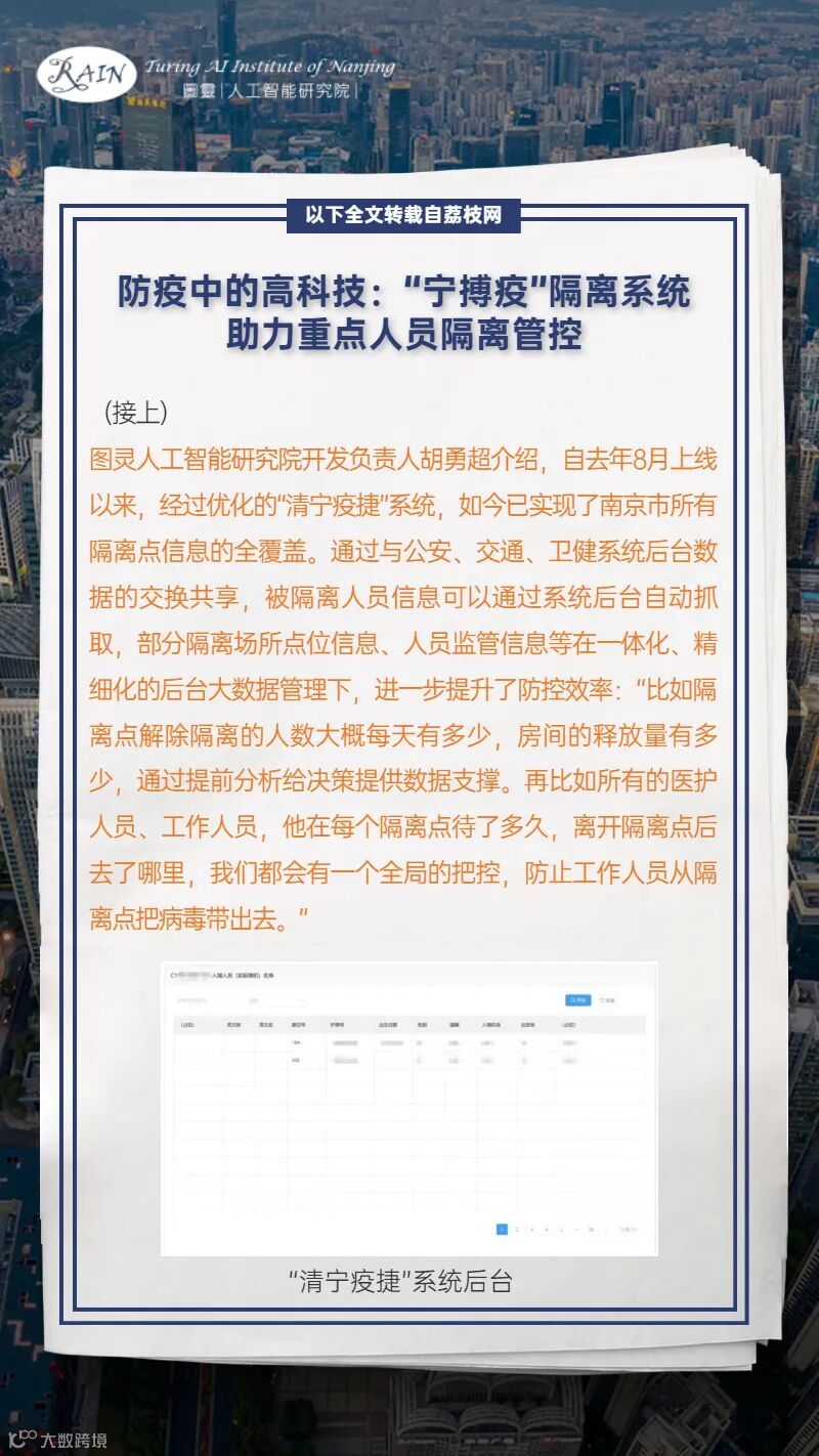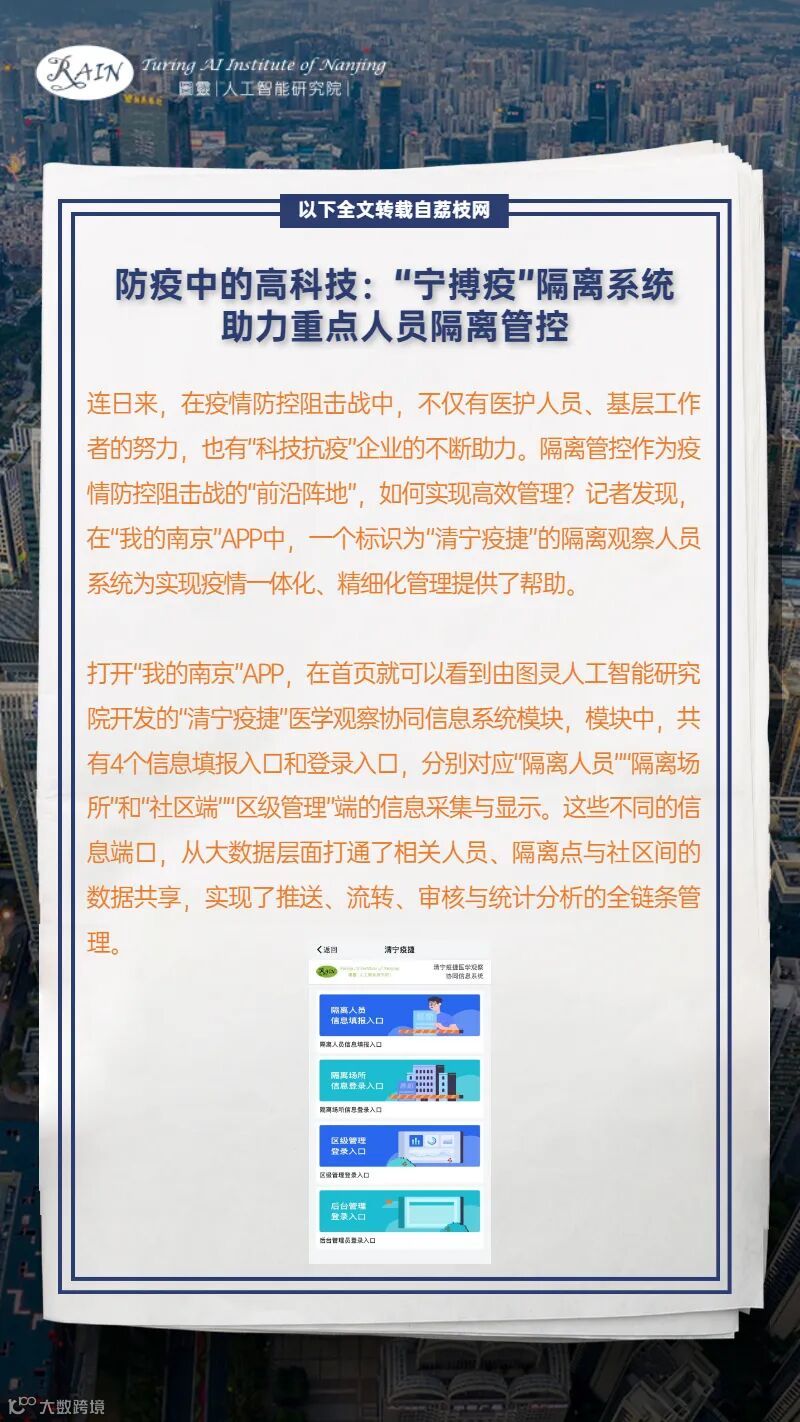 在疫情防控一线,科技始终是极为重要的支撑力量。图灵人工智能研究院作为南京市新型研发机构的代表,将在防疫应用场景、赋能效率等方面持续探索,为搭建疫情防控的“钢铁防护网”注入智慧力量。