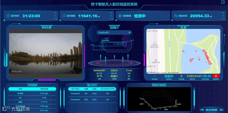 在行业应用标准产品方面,欧卡智舶聚焦无人驾驶环保船,经过百次迭代,根据不同的水域类型和需求,研发打造3款标准化的产品进行水面清洁、水草收割、水质监测、水域巡检等工作,配合自研的无人充电坞以及无人船智慧管理平台,形成智慧水域运维解决方案,从而实现全智能、数据化的水域环保运维作业及管理闭环。