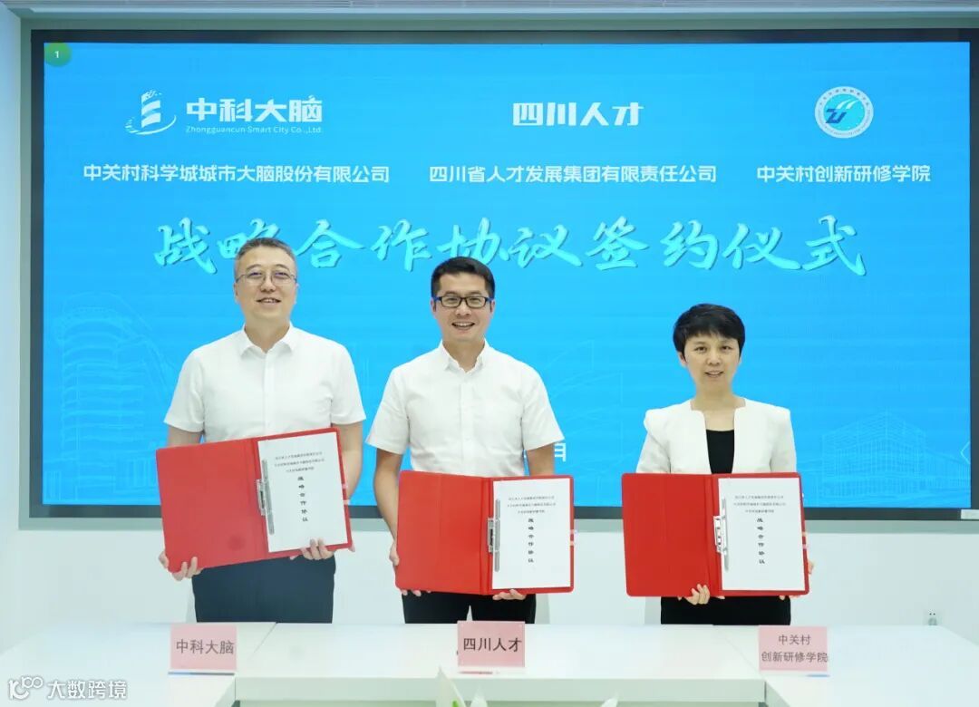 座谈会上,与会三方还围绕科技创新、人才管理服务、人才引育用留等问题进行深入探讨。最后,四川省人才发展集团有限责任公司与中科大脑、中关村创新研修学院正式签署战略合作协议。未来,三方将以此合作为契机,围绕人才数智管理平台、高端人才聚合平台、人力资源全链条服务平台等方面不断拓展合作的深度和广度,携手共赢,优势互补,共同推动“智慧人才”数字服务,赋能智慧城市建设。