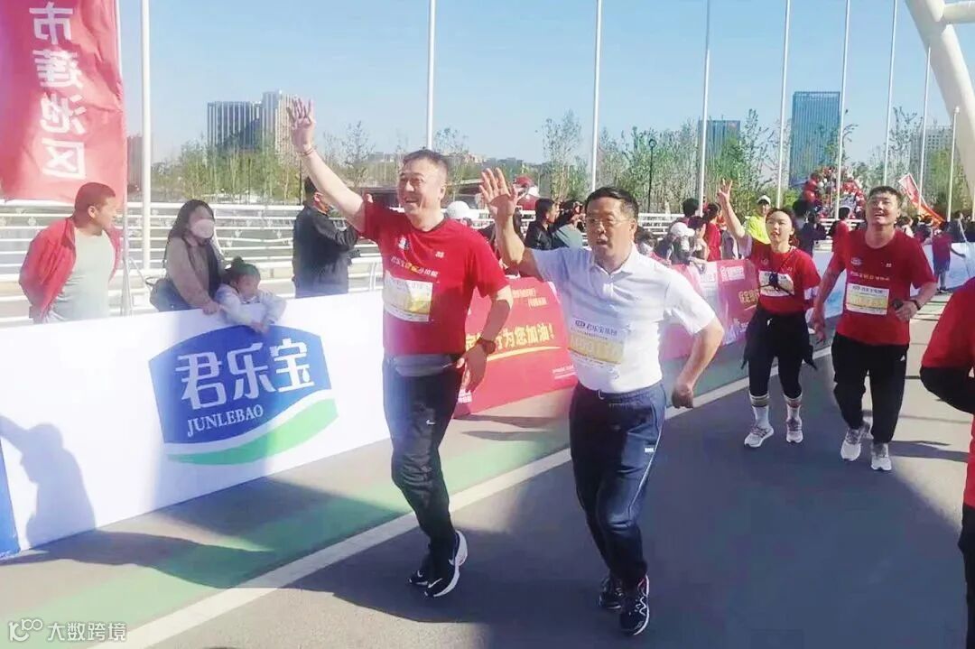 中科大脑CEO李浩浩与中关村上市公司协会会长、利亚德集团董事李军参加2023年保定马拉松