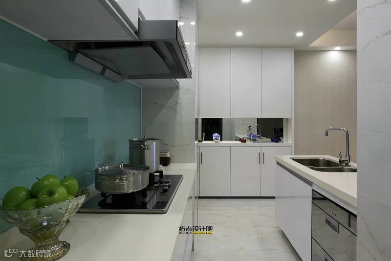 主要材料:雅士白大理石 不锈钢 白色烤漆板 灰镜 墙纸 皮革硬包
