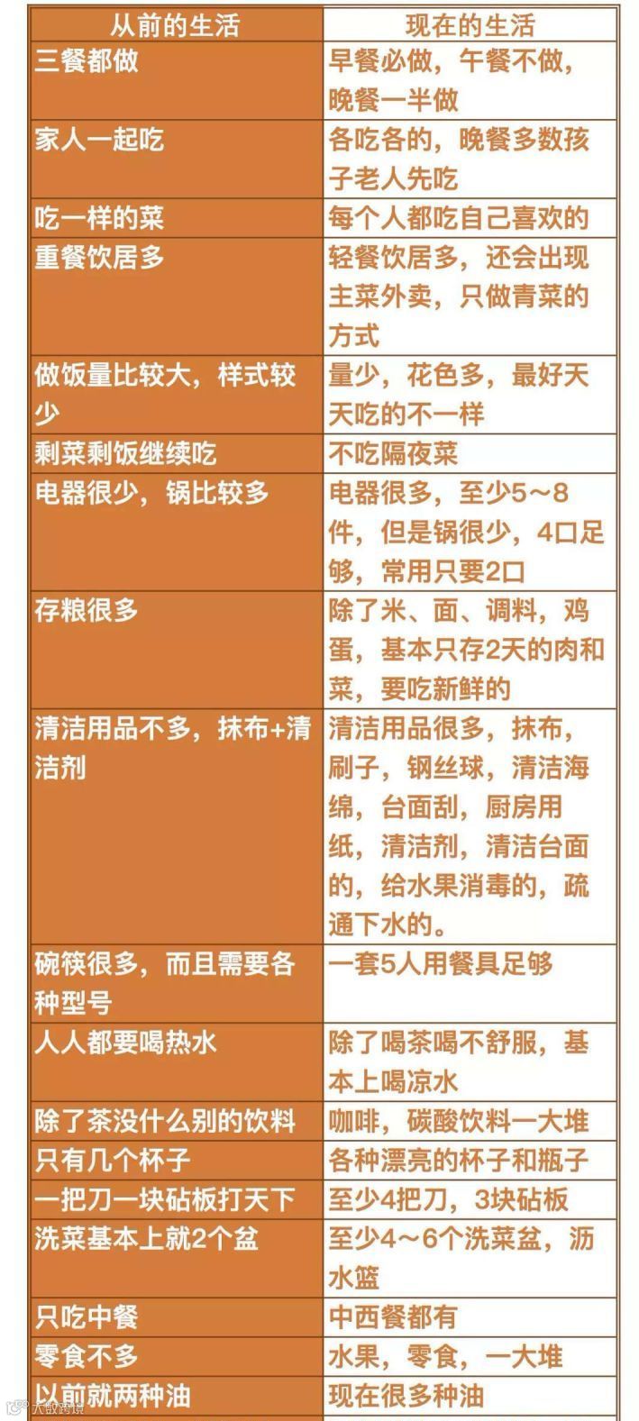 厨房需求变化对比