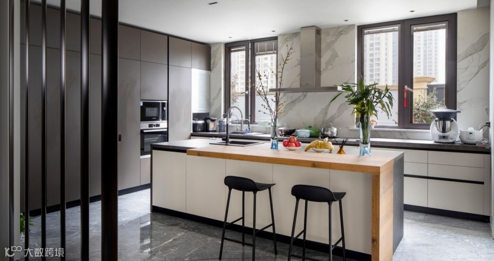 首先,身处寸土寸金的高楼大厦里,每个人都在挖空心思在这小小的空间容纳下一切的可能性,餐厨一体化的设计可以为家省出一个餐厅的空间来,何乐而不为呢?