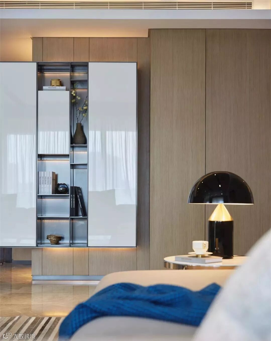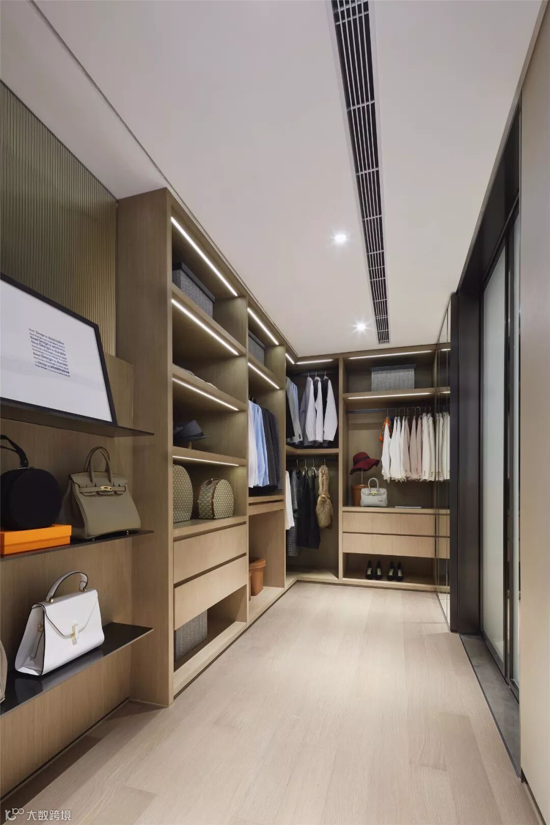 原木色的开敞柜体构建出步入式衣帽间,通透感扑面而来,处处展现着精致的气息。