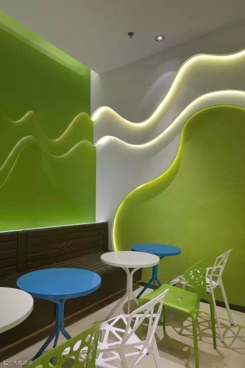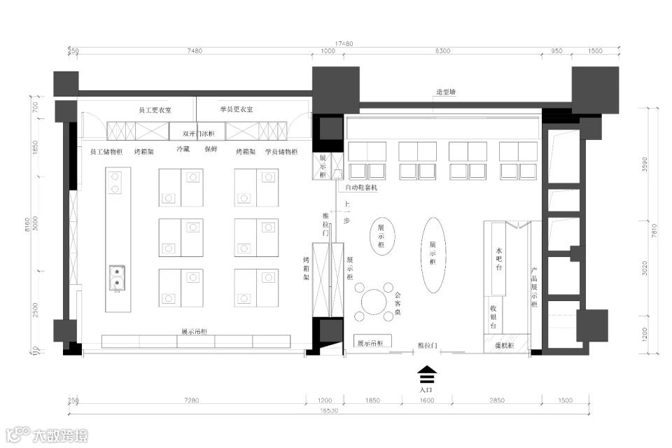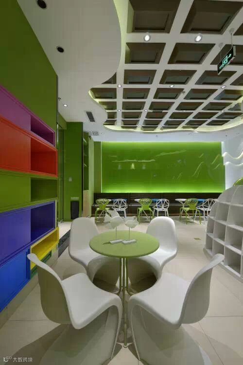 此项目位于万达内部,意在打造一个与众不同的概念店,即一半为招收学员DIY 甜品,另一半为对外经营,色彩上面能立即抓住顾客的眼球,集欣赏与品评为一体,设计构思上与众不同,创意十足。