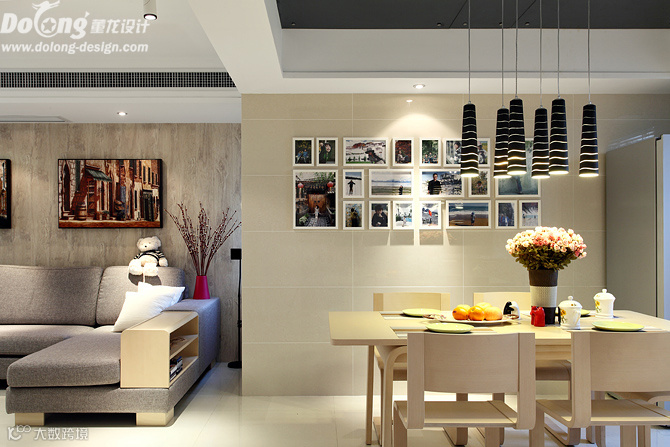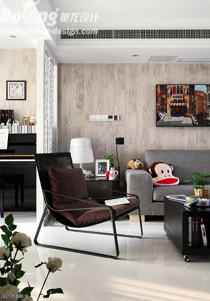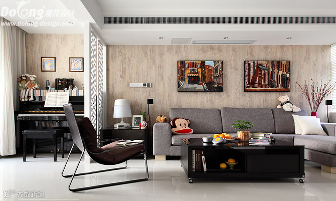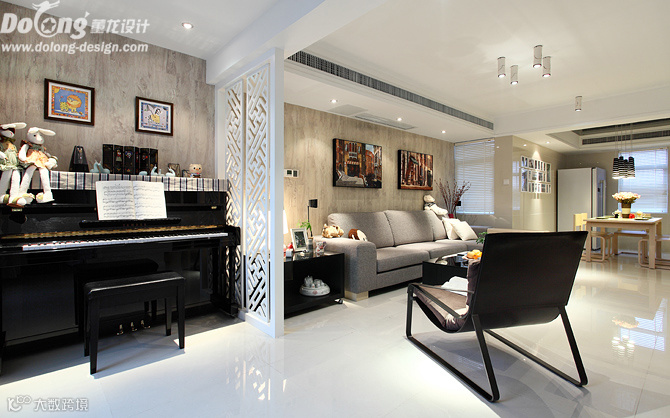 主要材料:玻化砖、白色混水显纹、艺术花格、黑镜、硅藻泥、进口地板