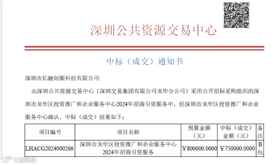 2024年8月5日,亿融创服参与《深圳市龙华区投资推广和企业服务中心2024年招商引资服务》项目投标,亿融创服成功中标《深圳市龙华区投资推广和企业服务中心2024年招商引资服务》。接下来,亿融创服将根据深圳市龙华区产业建圈强链相关要求,结合深圳市龙华区产业发展规划和发展方向,聚焦智能制造、生物医药、数字经济、新材料等先进制造业提供产业招商服务,以培育深圳市龙华区制造业核心竞争力,推动先进制造业集聚集群高质量发展。