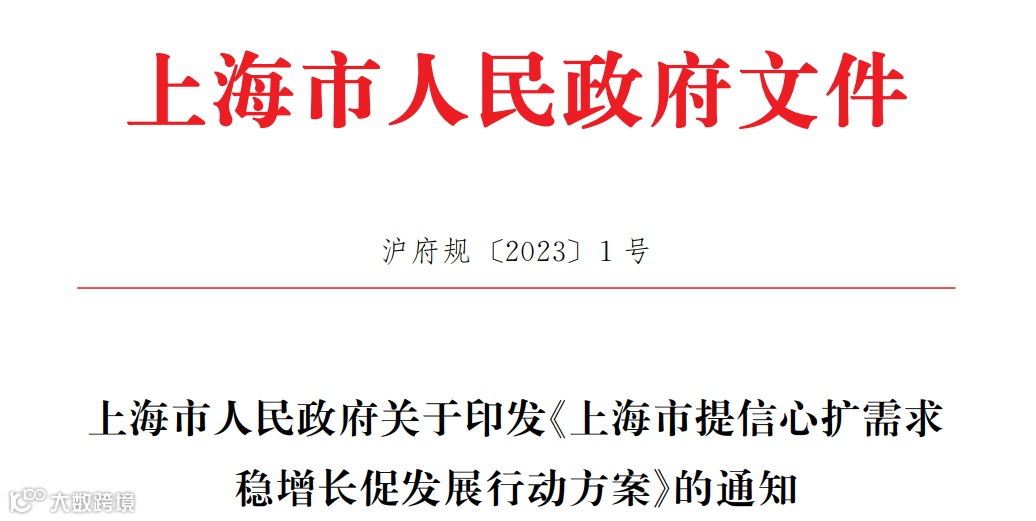 上海:《上海市提信心扩需求稳增长促发展行动方案》