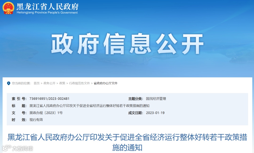黑龙江:《关于促进全省经济运行整体好转的若干政策措施》
