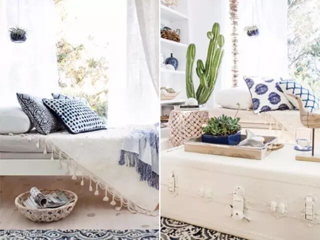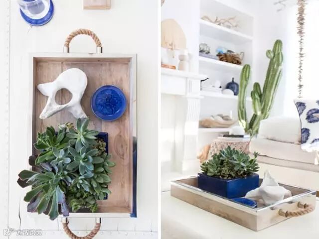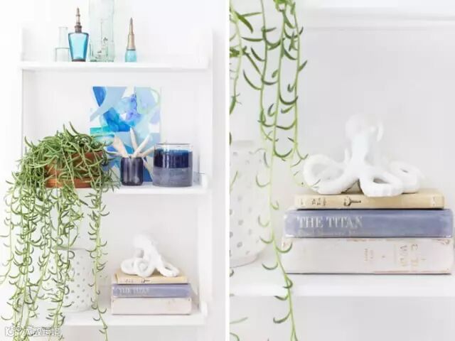 蓝色与白色混搭的基调未免会使整个房间显得有些清冷,Emily为了调节整个家的气氛,特意用一些清新淡雅、温暖质朴的小物件将家居空间衬托得更加轻盈,在宁静而诗意的空间里,述说着春天的浪漫故事。