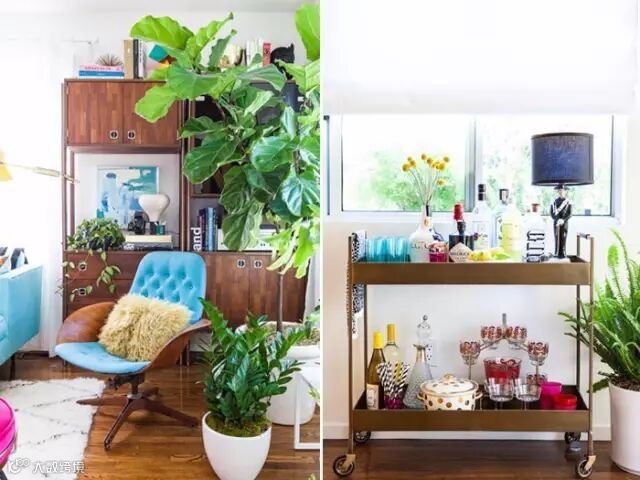 大量的绿色植物点缀其中,释放着春日的缕缕柔情,带给人无尽美好的感觉:好想在家中和春天来一场迷人的约会。